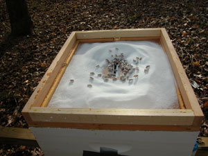 SIMPLE SYRUP- Mix 2-3 parts granulated sugar and one part water (using hot water to melt sugar works best). Be sure sugar is melted and then let sit to room temp. Use only granulated sugar... no juices, no confection or raw sugar, no honey (unless it is from your own hive) no "natural sugars" etc. Using other carbohydrate sources can cause the bees dysentery and Nosema. Bee biology can only handle the very simple form of granulated sugar unless you are purchasing a special formula from a beekeeping supply company.